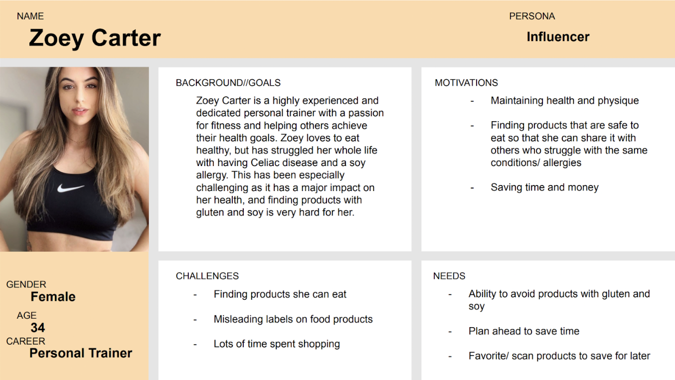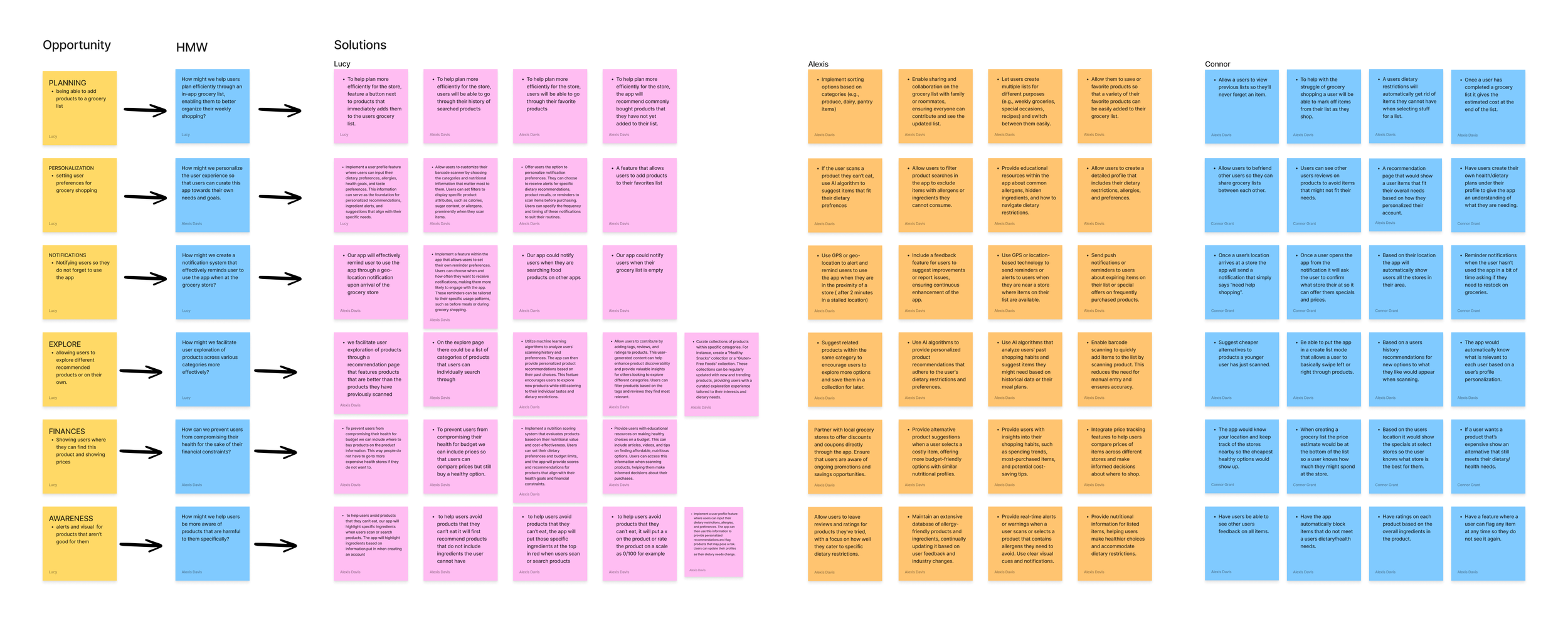 While creating personas and journey maps based on our interviews, I developed two personas, Zoey Carter and John Smith. They each navigated the grocery shopping process, from preparation to checkout. I documented their emotions and actions throughout this journey, identifying the challenges they faced and outlining how our team could address them.